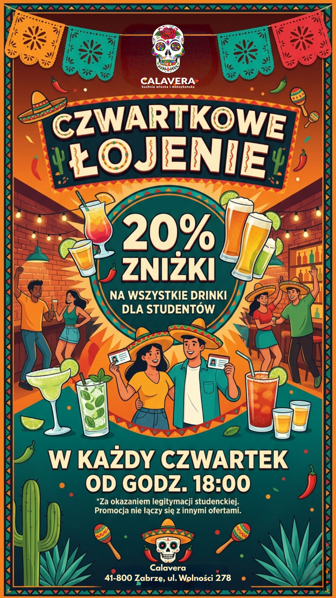 👉 -20% NA WSZYSTKIE DRINKI! 💳 Co trzeba zrobić? Wystarczy pokazać przy barze ważną legitymację studencką.